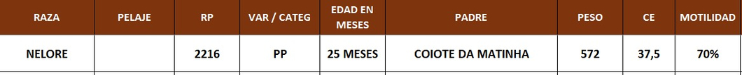 | Raza | NELORE |